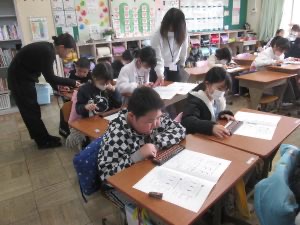 4年生が元気よく学習する様子に、参観者から素晴らしいとの評価をいただきました。
