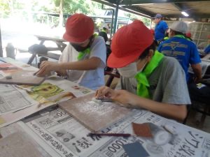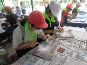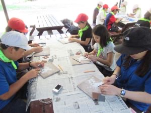 1日目の午前中は、自分で石を削って、勾玉づくりを行いました。