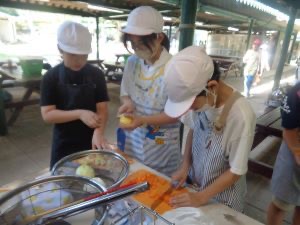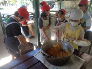 宿泊学習2日目のお昼は、カレーライスを自分たちで作ります。