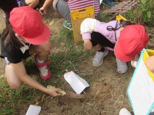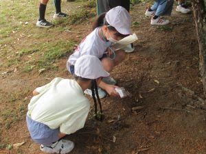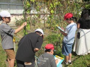 子供たちは枯れた葉を触ったり、匂いを嗅いだりしながら、詳しく記録をとっていました。