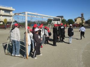 走る前にクラスのみんなで、元気いっぱい掛け声をかけます。