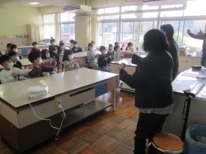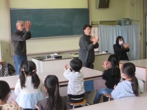 手話サークル「わたぼうし」の方々を講師に、1年生が手話を学びました。