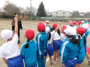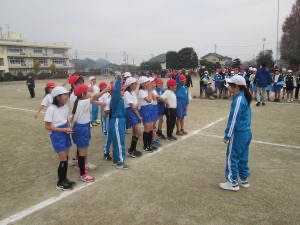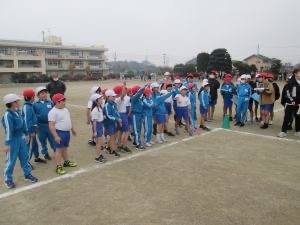 走る前にクラスのみんなで、元気いっぱい掛け声をかけます。
