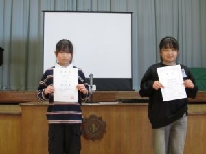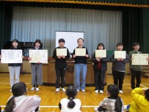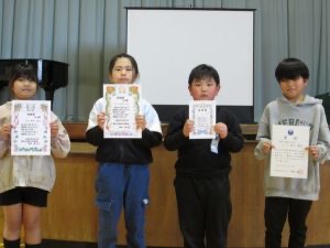 今日の全校集会では、たくさんの児童が表彰を受けました。