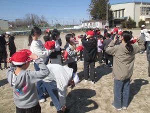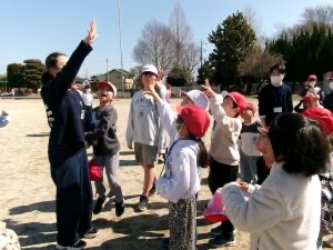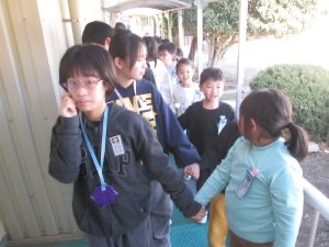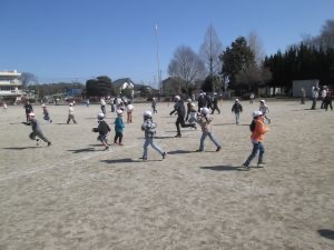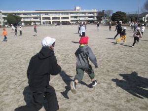 6年生も1年生も一緒になって、追いかけたり逃げたりしていました。