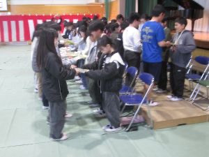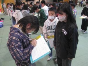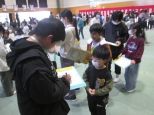 6年生のサイン集めでは、6年生の前に在校生の列ができました。